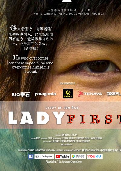 究竟人工攀岩還是野外攀更能代表攀岩?紀錄片「LADY FIRST 」,描述主角君寶從比賽成績平平到野外攀岩的成功故事,成為中國第一個5.14的女姓,過程中也遇到她的真愛劉佳,成為永遠的拍擋,紀錄片最後講述君寶完成5.14A/B的路線「法國流氓」。「LADY FIRST 」前後用了兩年時間拍攝和製作,拍攝地點包括貴州攀岩公開賽,格凸攀岩公開賽,西安大岩壁,泰國krabi ,昆明墨雨洞,陽朔白山。